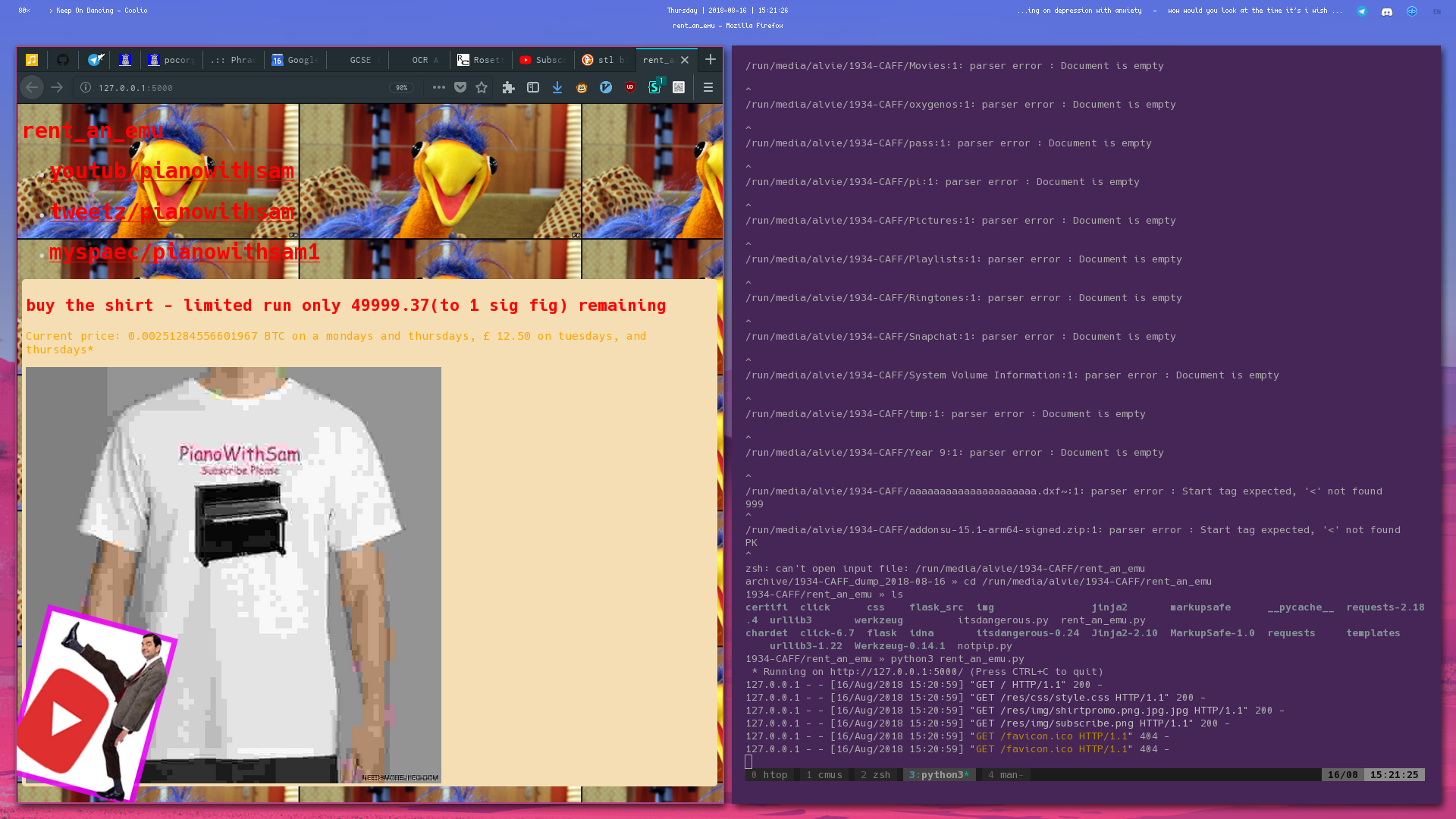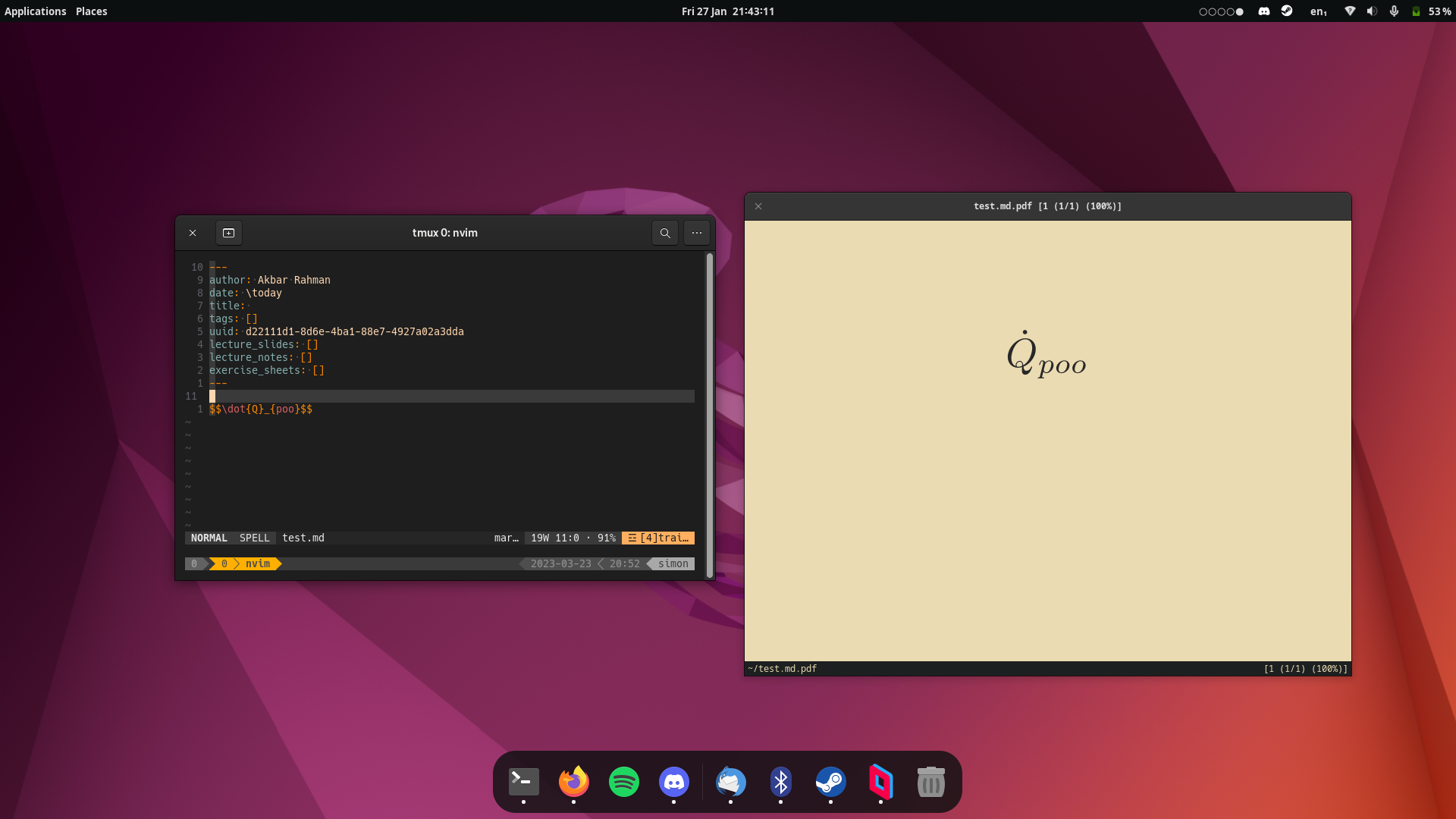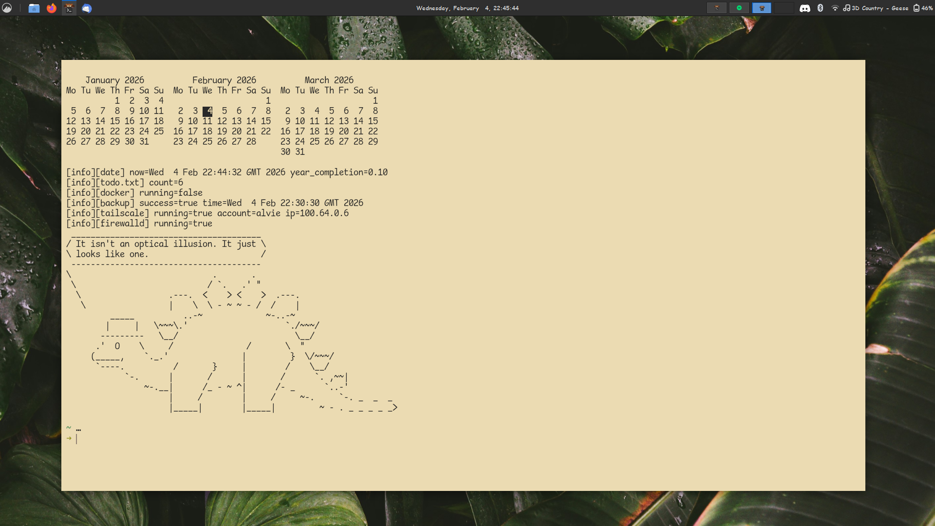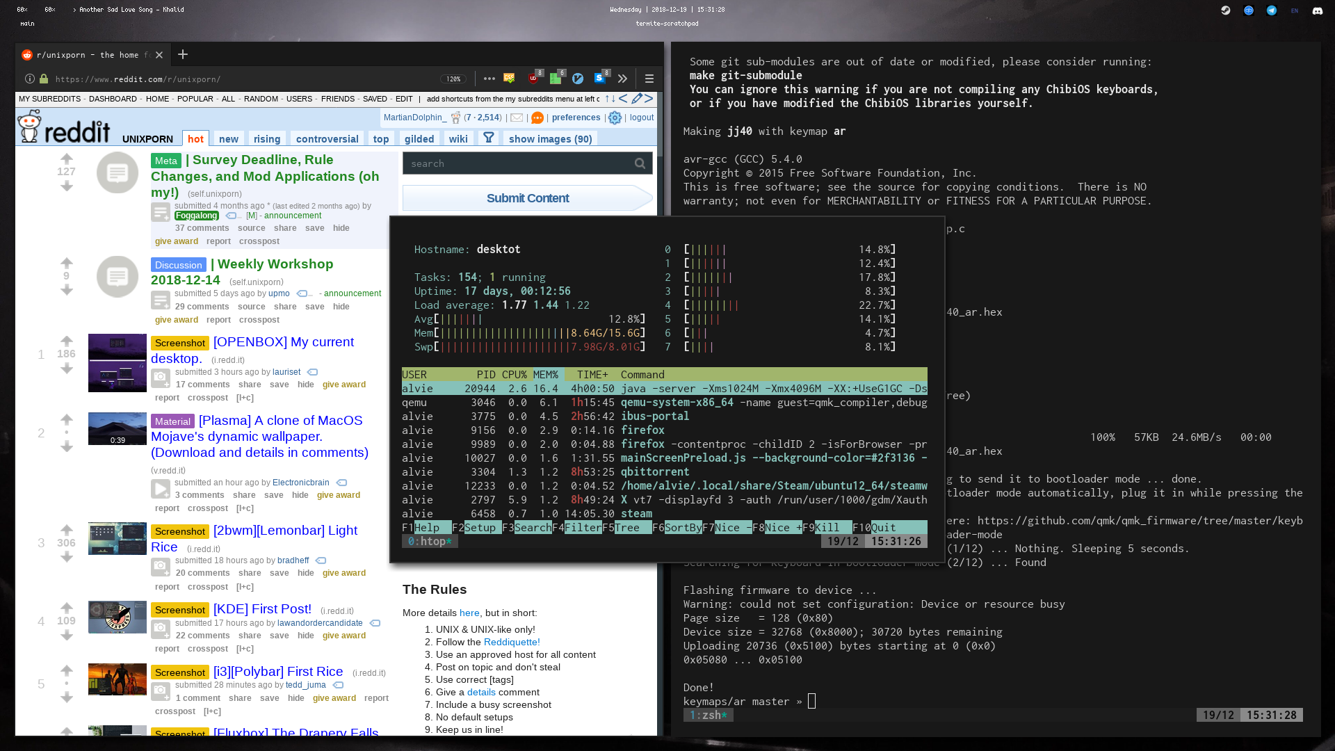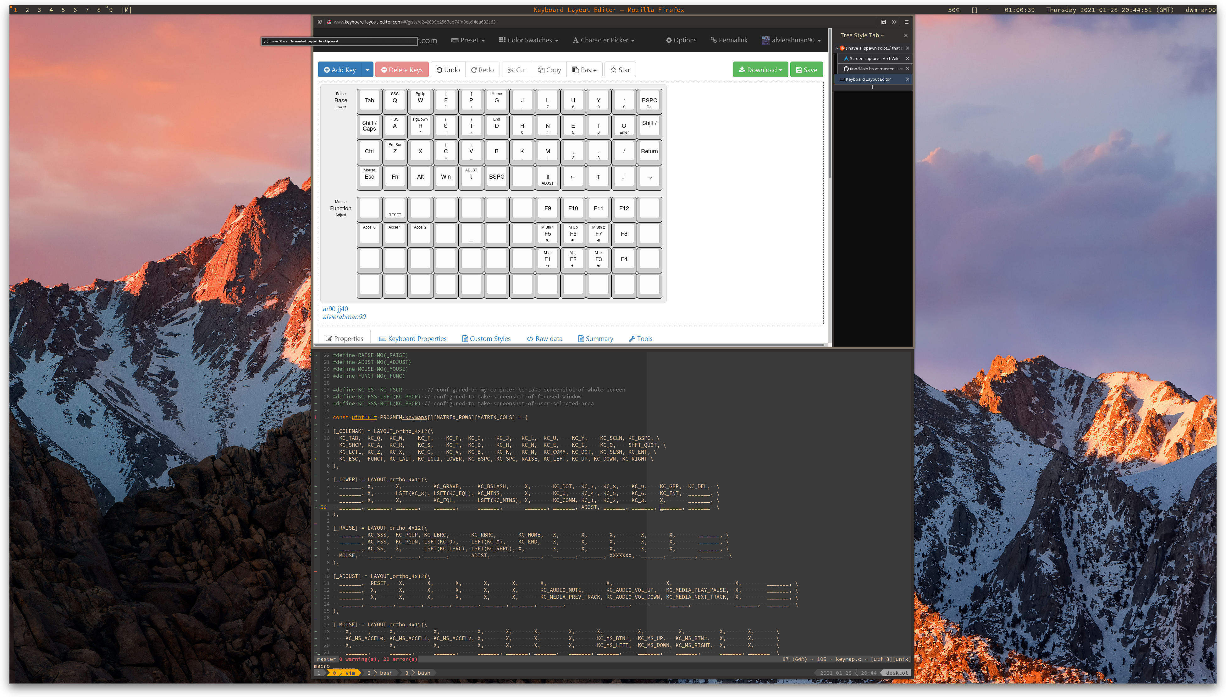 Switched to a laptop and I couldn't be bothered to figure out how to add dynamic screen behaviour in DWM. Switched to GNOME :( At least GNOME supports fun timed wallpapers though! Also the transparent terminal is very distracting not sure how I dealt with that. Still using the st terminal emulator with curie.